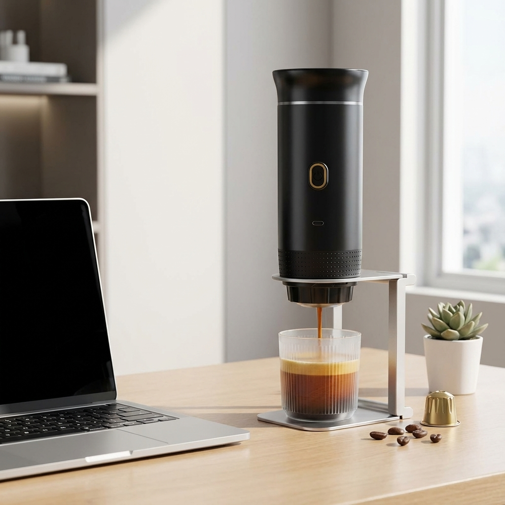 ☕ Fresh coffee anywhere • USB-C rechargeable • One-button brewing • Capsule & ground • Travel-ready design